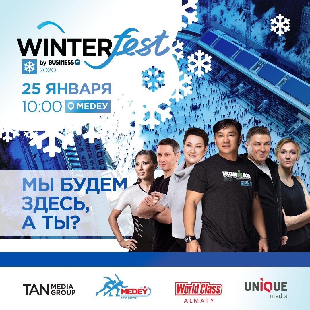 На «MEDEÝ» MYZ AIDYNY» прошел фестиваль WinterFest. Олимпийцы, известные спортсмены, воспитанники школы таэквондо, Almaty Triathlon Federation, объединенной Федерации смешанного боевого единоборства ММА, хоккейного клуба «Стрижи», казахстанской федерации шахмат, инструкторы школы скандинавской ходьбы «Евразия», организаторы «Almaty Marathon», команда параспортсменов пронесли по льду флаги со слоганами.